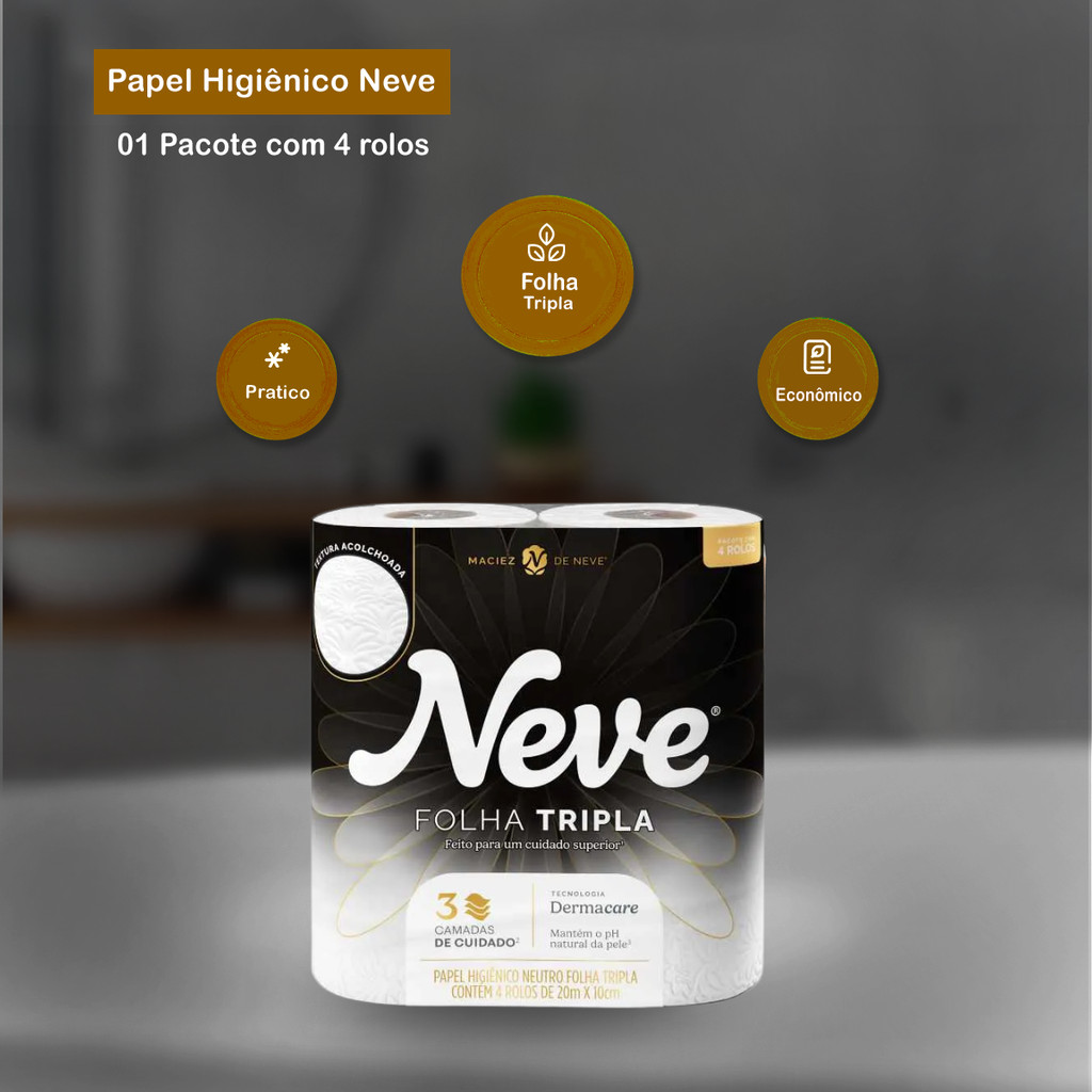 Papel Higiênico Folha Tripla 20m com 4 rolos Neve