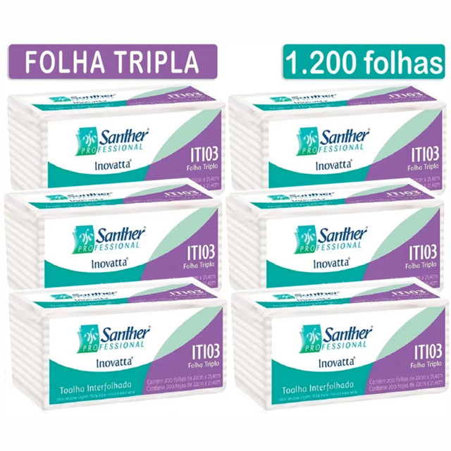 Papel Interfolha Folha Tripla Inovatta Super Macia C/ 1200 folhas - Santher aparece na subcategoria Toalhas de Tecido e Papel (de Casa e Construção) na Shopee Brasil por R$ 116,80 (22% de desconto sobre o preço original de R$ 149,74). Avaliado em 4.9/5 pelos compradores e 63 unidades vendidas, este produto se destaca pelo excelente custo-benefício.