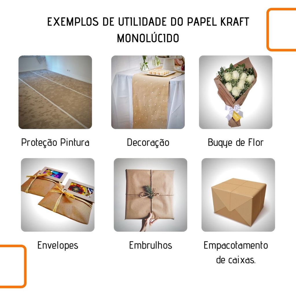 Papel Kraft 80g c/ 60cm de largura x 10 Metros de comprimento p/ embalagem Monolúcido
