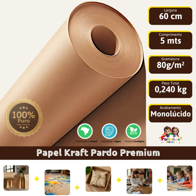 | Papel Kraft 80g Com 60cm De Largura x 5 Metros De Comprimento - Com... este produto | R$ 12,90 | 19% | 5.0/5 | 9 |