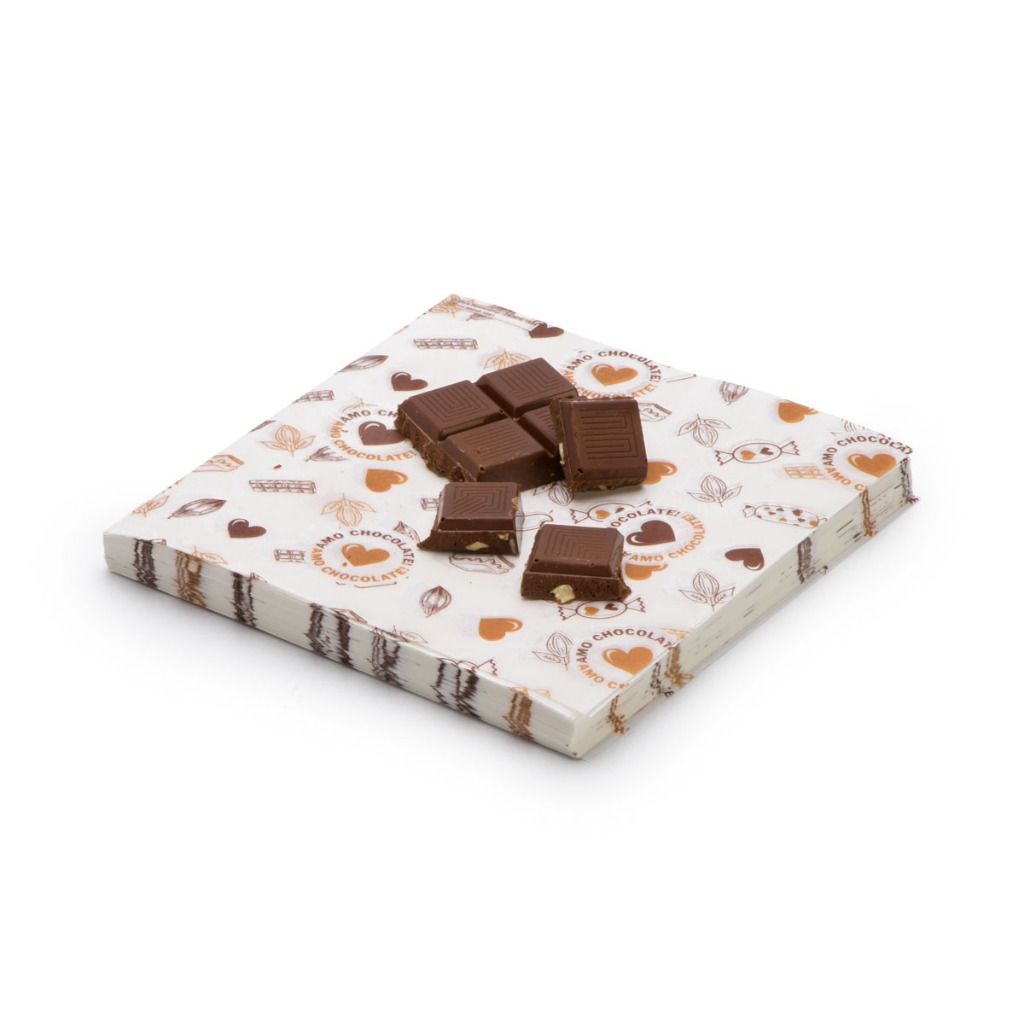 Papel Manteiga 20x10cm Amo Chocolate Antigordura Doces Salgados e Biscoitos