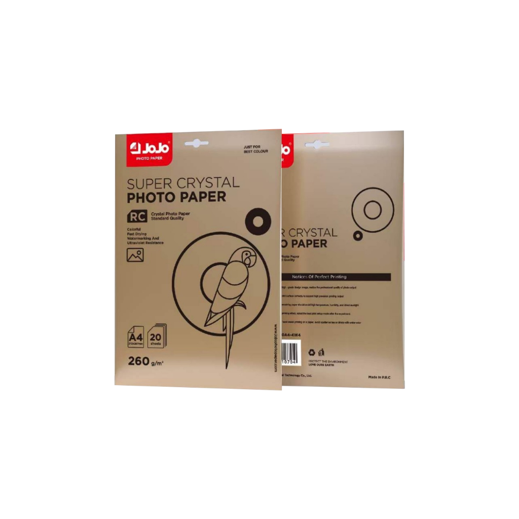 Papel Microporoso A4 RC Super Crystal 260g JOJO *BRILHANTE* 20 Folhas À Prova D'Água, Jato de Tinta