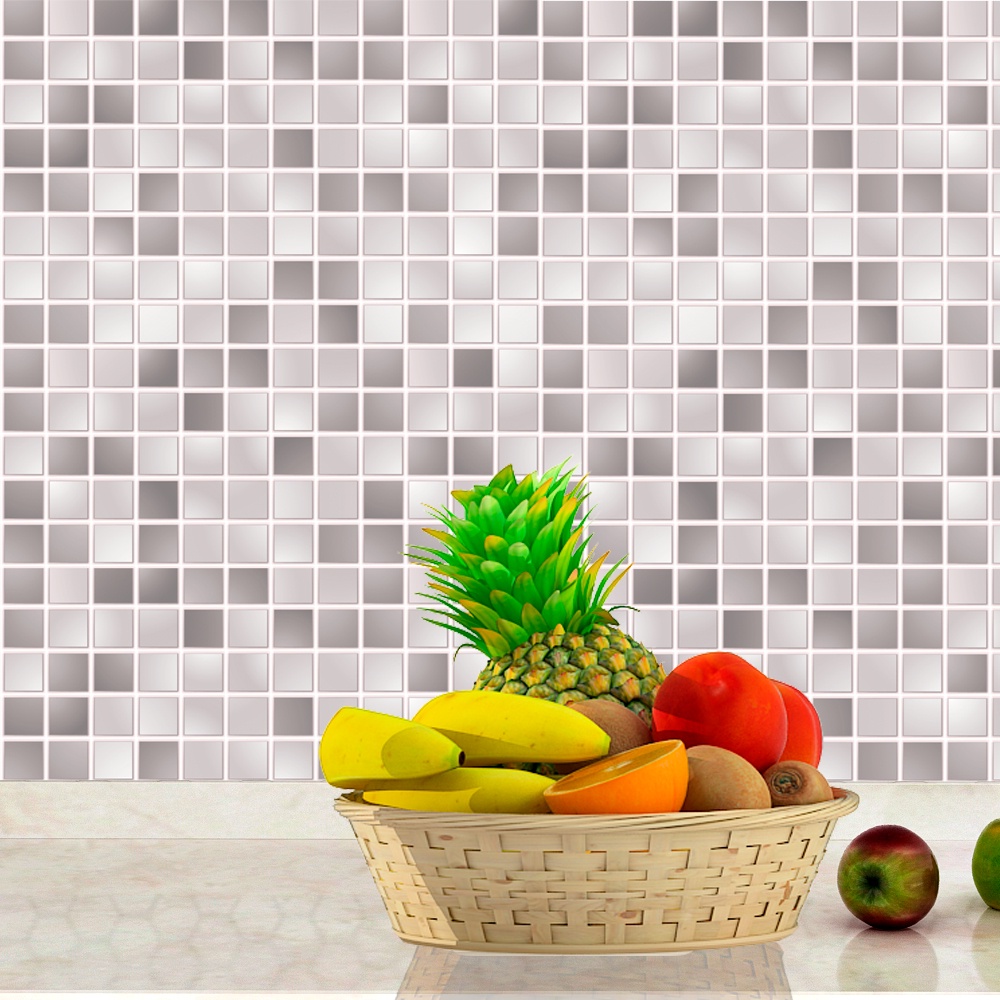 Papel Parede Decor Cozinha Pastilha Cinza Prata Lavável 3m