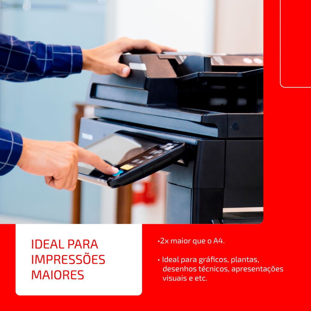 O Papel Sulfite Chamex A3 75g é sinônimo de qualidade e versatilidade. Com tamanho ampliado (297mm x 420mm), é perfeito para impressões detalhadas, desenhos técnicos, gráficos e projetos criativos. Sua gramatura de 75g oferece leveza e excelente desempenho em impressoras e copiadoras, sem comprometer a nitidez e o contraste das imagens e textos. Ideal para uso doméstico, escolar ou profissional, proporciona acabamento impecável em cada folha. Detalhes: - Formato A3 (297 x 420 mm): Oferece espaço maior para layouts criativos e documentos detalhados. - Excelente custo-benefício para grandes projetos. - Qualidade Chamex: Garantia de papel de alta qualidade e confiabilidade. - Superfície lisa para maior qualidade de impressão e escrita. - Gramatura 75g/m²: Excelente performance ao imprimir, escrever e reproduzir
