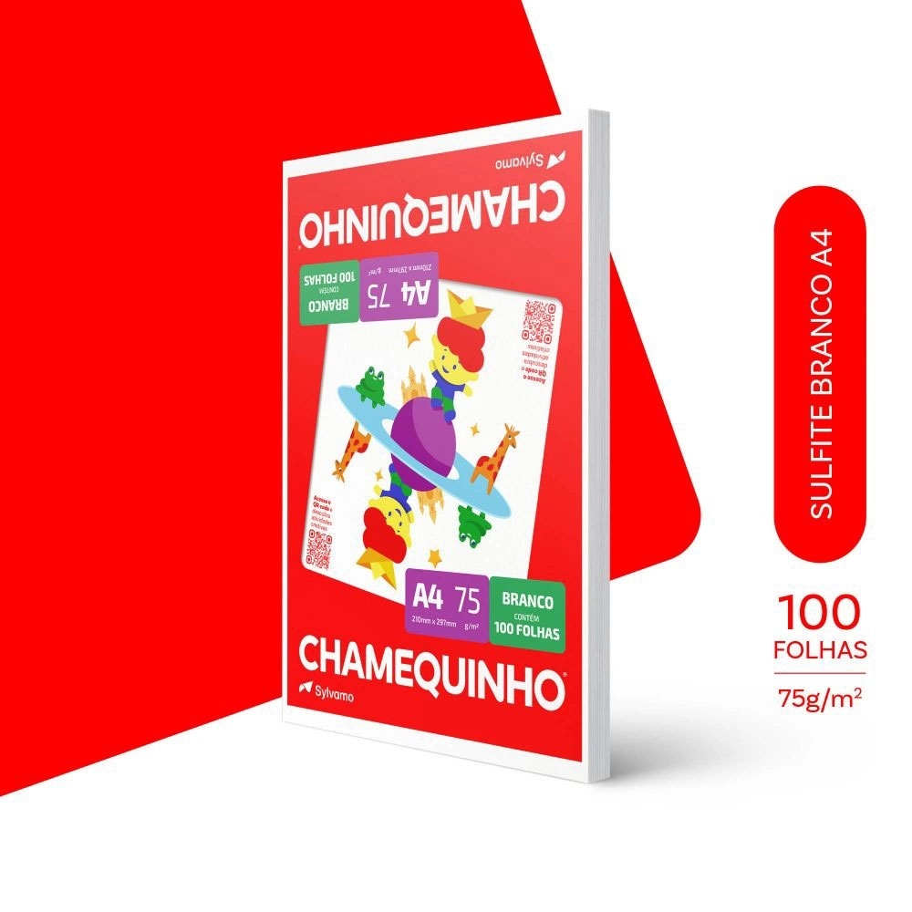 Papel sulfite A4 75g 210x297 com 100 folhas Chamequinho