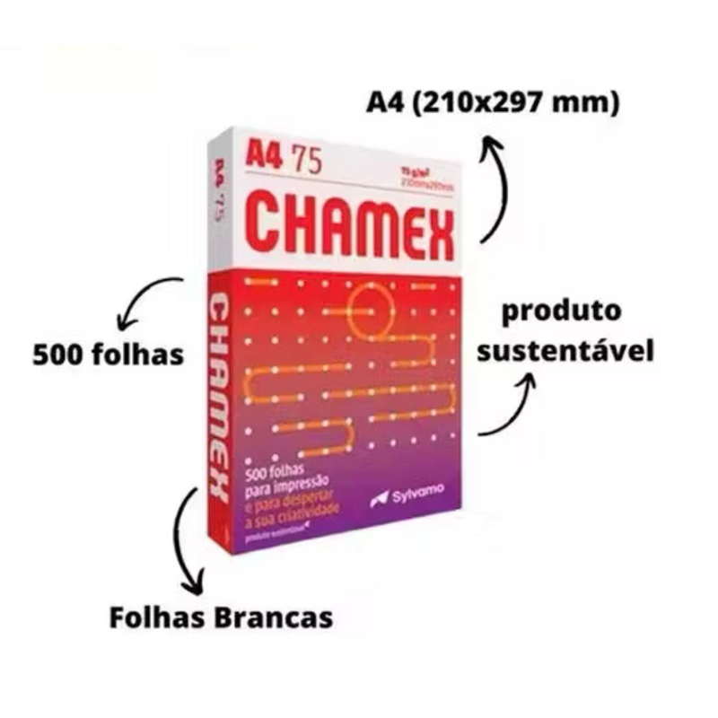 Papel Sulfite Chamex A4 500 Folhas 75g/m² Sulfite Branco Impressão e Cópia Escritório Escolar
