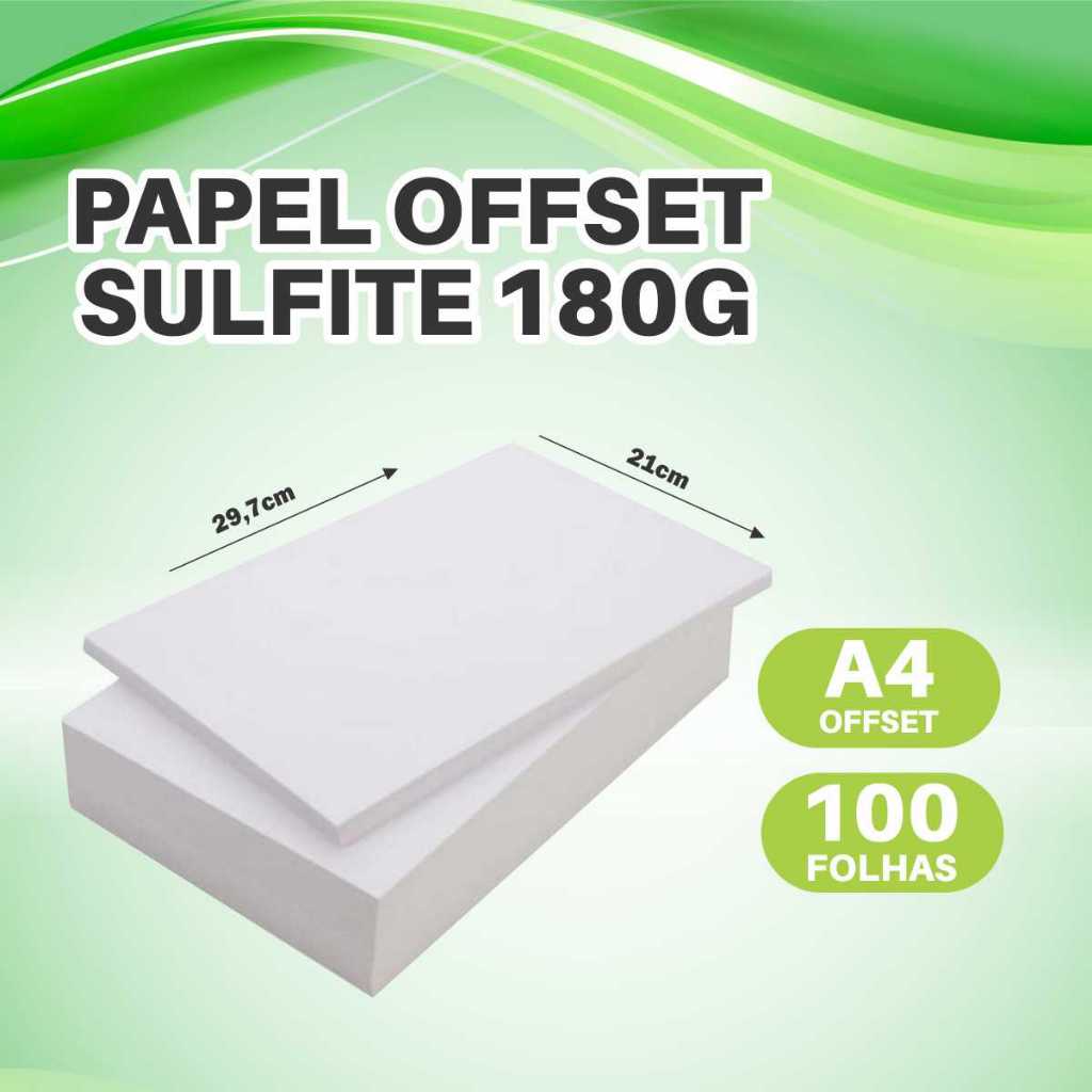 Papel Sulfite Offset 180g A4, 100 Folhas, Tamanho 21x29,7cm, Branco Grosso Cartolina