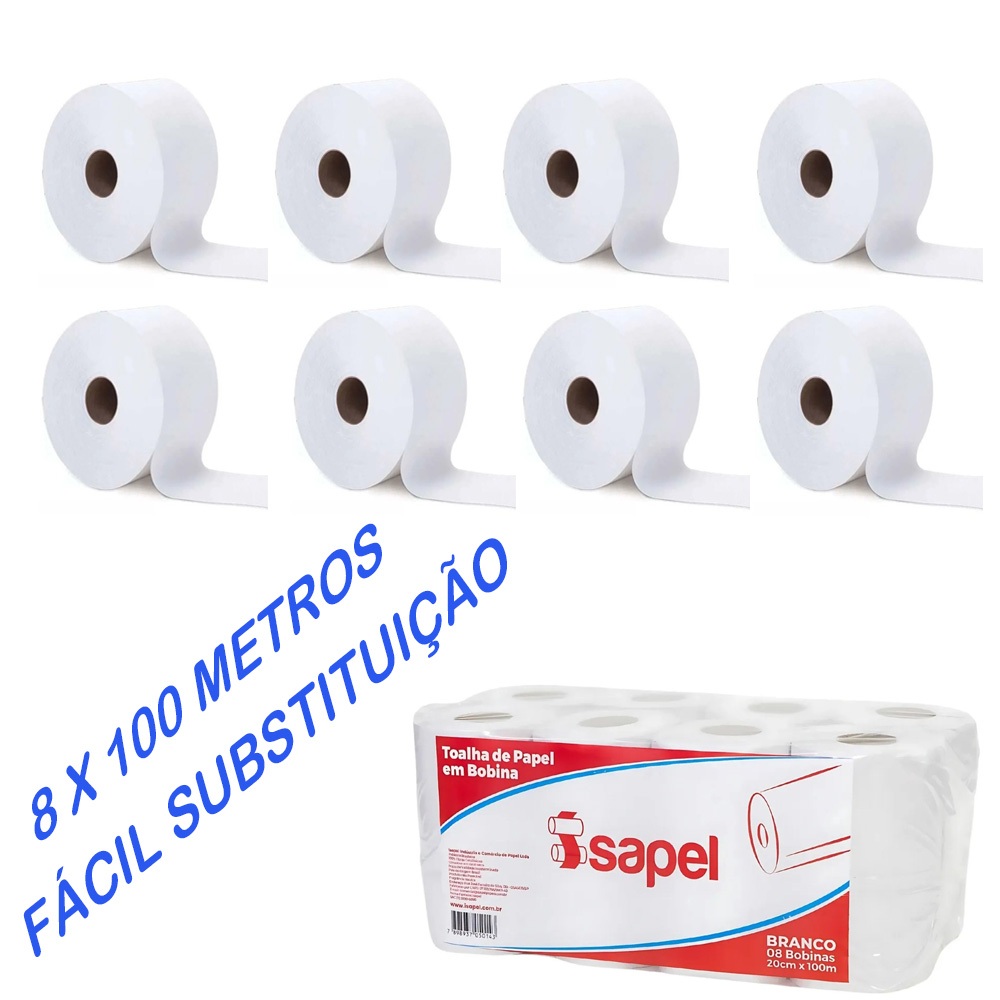 Papel Toalha Bobina Banheiro Cozinha Branco 20x100 8 Rolos Barato