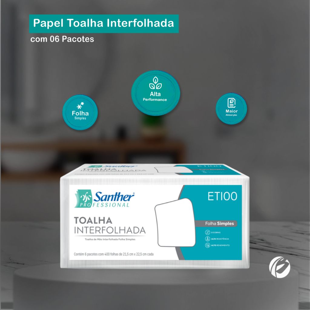 Papel Toalha Interfolha 3 Dobras Folha Simples Eco ETI00 com 2.400 folhas Inovatta A Toalha Interfolhada ETI00 da linha sustentável Eco possui três dobras que auxiliam a absorção de líquidos, garantindo uma maior resistência ao úmido e a preocupação com o meio ambiente. É resistente, com alto poder de absorção e excelente alvura. Não causa irritações dérmicas. Indicação de Uso: - Atua na secagem das mãos, limpeza de superfícies, e para outros fins na cozinha e em ambientes de trabalho. Dispenser Compatível: Cód de Fábrica: DTE10 Tipo: Interfolha / 03 Dobras / Folha Simples Cor: Branco Dimensões: 21,5cm x 22,5cm Embalagem: Contém 2.400 folhas