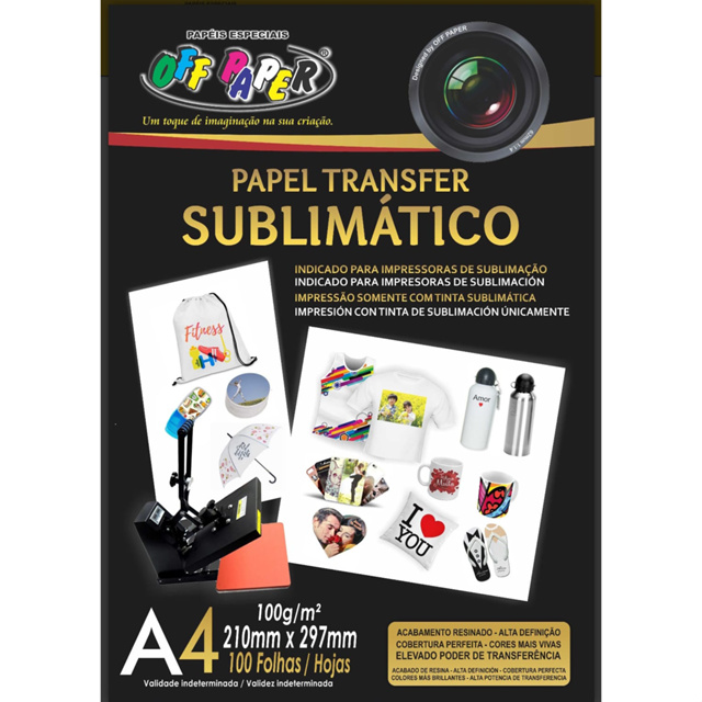 | Papel Transfer Sublimático A4 100g/m² – 100 Folhas - OFF PAPER este produto | R$ 35,99 | — | 4.7/5 | 5 |