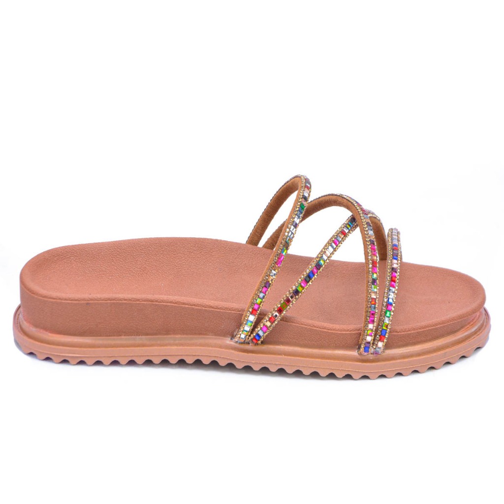 Papete feminina viz slide strass multicolor colorida confort