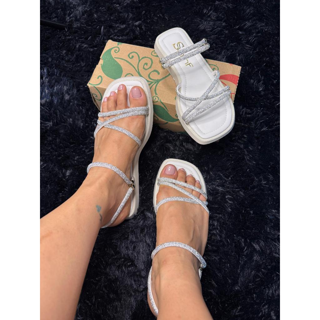 Papete Flatform Sanf Brilho Feminino Confortável Ajuste Strass Elegante Ajustável Leve Macia Dia