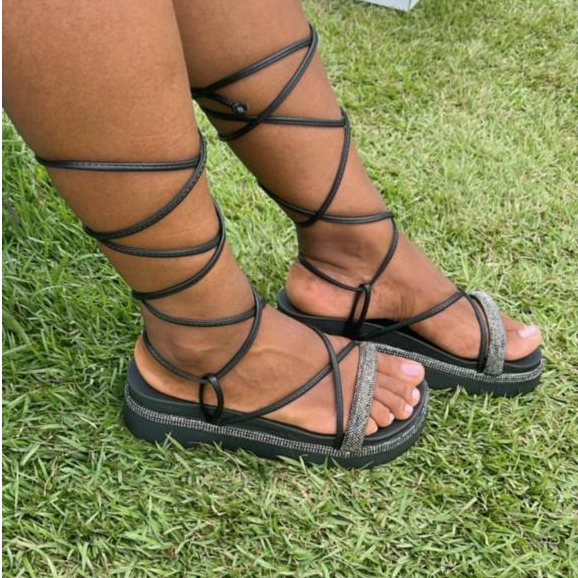 Papete Plataforma Gladiadora De Amarrar ajustável Amarraçao Com Strass