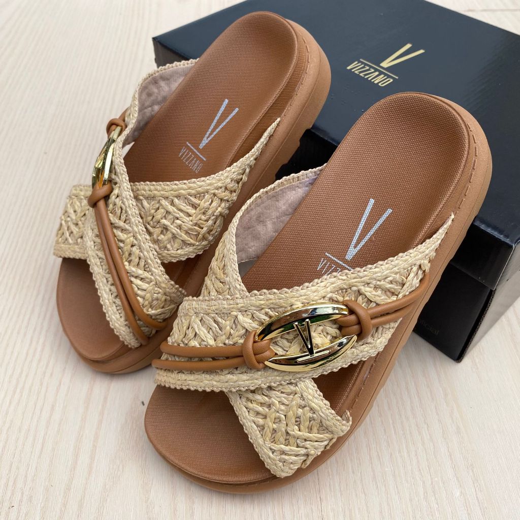 Papete Sandália Feminina Vizzano Trançada Tratorada Pingente Confortável Acolchoada