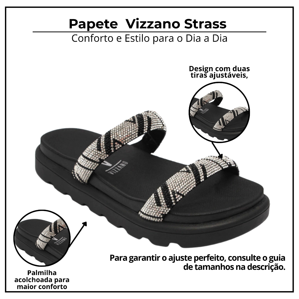 Papete Vizzano Feminina Strass Brilho Tratorada Original Preto e Prata 6459-86785