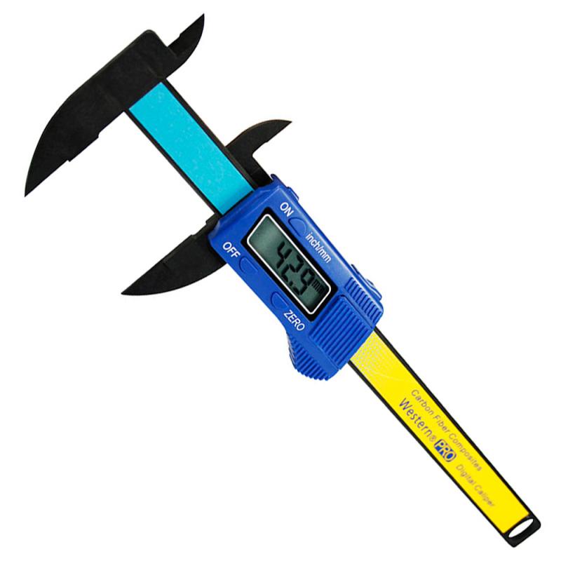 Paquímetro Digital 6 POL Profissional DC-6 WESTERNProfissional (PRO).Display LCD de Fácil leitura.Com indicador de bateria fraca.Leve e durável.Capacidade: 0 á 6"(150 mm);Utiliza 1 bateria 1,5 V (SR44/LR44) inclusa.ESPECIFICAÇÕES TÉCNICAS:Capacidade 0-150mm/ 0-6”Resolução 0.1mm / 0.01”Exatidão ±0.1mm / 0.01”Repetitividade 0.1mm / 0.01”Veloc. Máx de Resposta 1.5m/seg., 60”/seg.Sistema de Medição Sistema linear sem contato.Display LCD; sinal "-", 4 DígitosAlimentação 1 Bateria 1.5V (SR44/LR44)Temperatura de Operação 0°C a +40°CTemper. Armazenamento -20ºC a +40°CInfluencia da Umidade Não é importante com umidade relativa entre 0% a 80%Dimensões da Peça: 24,5 x 76 x 1,5cmDimensões da Embalagem: 28,9 x 10,5 x 1,8cmModelo: DC-6Marca: Western* Imagens meramente ilustrativas.