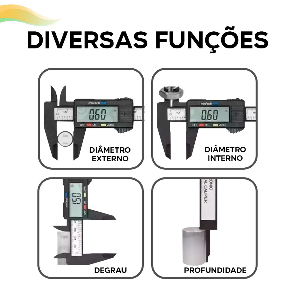 Paquimetro Digital Seja bem-vindo(a) ao nosso canal de vendas! Temos como objetivo a satisfacao de nossos clientes e a missao de atender bem, trabalhando com profissionalismo nas vendas e no atendimento. Proporcionando assim uma otima experiencia de compra! - - - - - - - - - - - - - - - - - - - - - - - - - - - - - - - - - - - - - - - - - - - - - - - - - - - - - - - - - - Ideal para ter medidas com extrema precisao, este paquimetro conta com uma tela LCD e duas opcoes de medidas sendo milimetro, polegadas, profundidade, diametro externo e interno. Conta com uma faixa de medicao de 0-150mm/0-6" e resolucao de 0.1mm/0.01", alem de contar com um layout de botoes facil de usar!! Leve, pratico e simples ao utilizar! Adquira ja o seu! - - - - - - - - - - - - - - - - - - - - - - - - - - - - - - - - - - - - - - - - - - - - - - - - - - - - - - - - - - ITENS INCLUSOS: - 1 Paquimetro Digital CARACTERISTICAS: - Mede milimetros, polegadas, profundidade, diametro externo e interno - Tela LCD - Faixa de medicao: 0-150mm/0-6" - Resolucao: 0.1mm/0.01" - Alimentacao: 1 Bateria LR44/AG13 1,5V (Inclusa) MEDIDAS E PESO: C-24cm L-8cm A-2cm - 89g - - - - - - - - - - - - - - - - - - - - - - - - - - - - - - - - - - - - - - - - - - - - - - - - - - - - - - - - - - Aguardamos a sua compra e esperamos te proporcionar uma excelente experiencia!