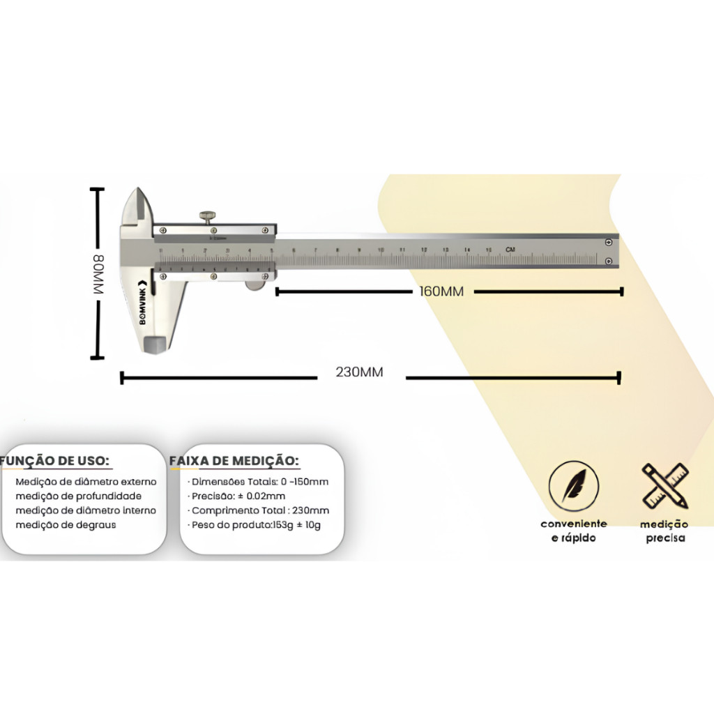 Paquimetro Manual Analógico Universal 150mm Aço Inox Estojo