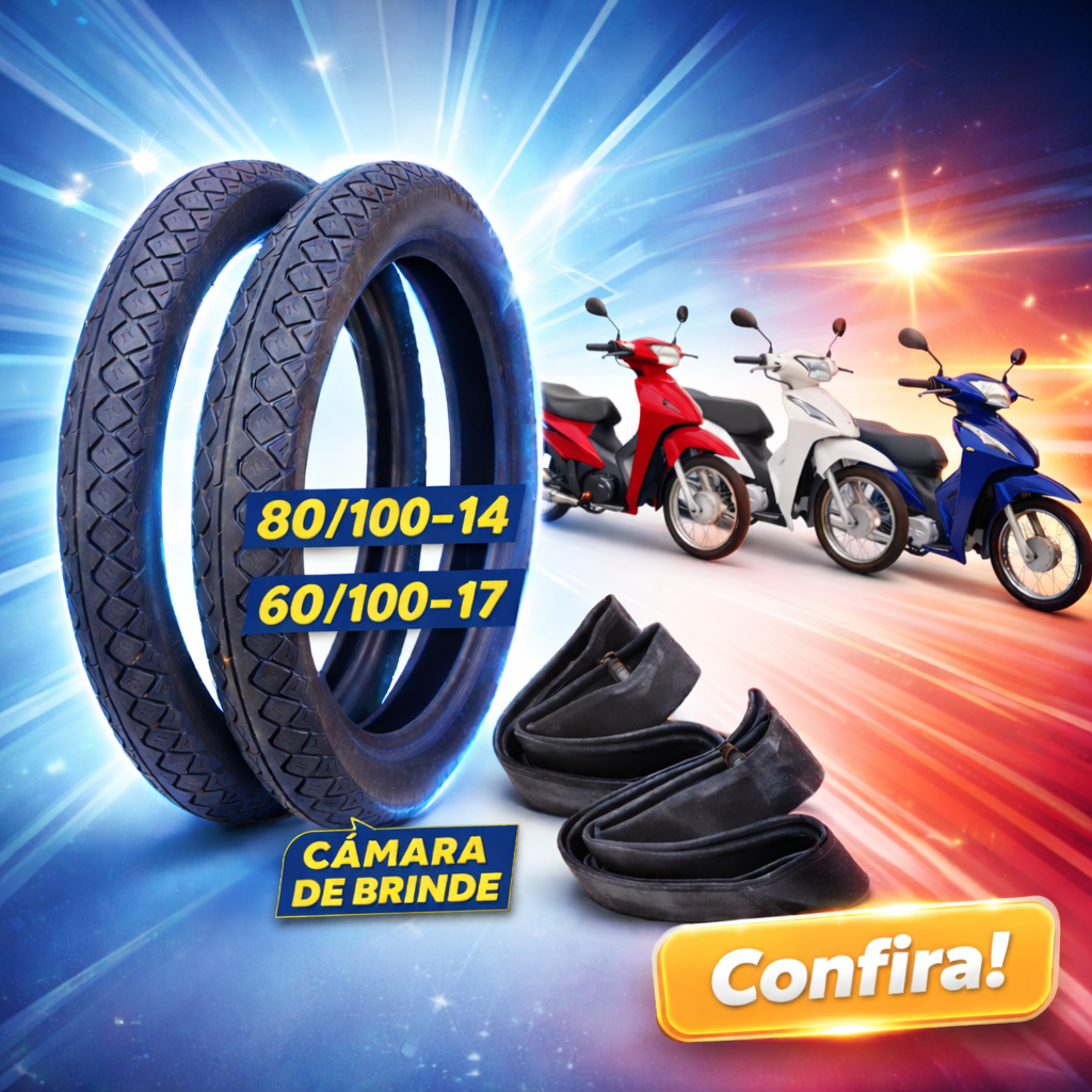 Perfeito. Segue a descrição para anúncio na Shopee, sem ícones, limpa e profissional: Par de Pneus Meridional RD Biz / Pop 80/100-14 + 60/100-17 com 2 Câmaras de Ar Produto novo, kit completo pronto para instalação. O par de pneus Meridional RD acompanha duas câmaras de ar (aro 14 e aro 17) e é indicado para motos urbanas, oferecendo boa estabilidade, durabilidade e conforto para o uso diário. Especificações do Produto Marca: Meridional Modelo: RD Tipo: Uso com câmara de ar Pneu traseiro Medida: 80/100-14 Aro: 14 Pneu dianteiro Medida: 60/100-17 Aro: 17 Câmaras de ar 01 câmara aro 14 01 câmara aro 17 Compatibilidade Honda Biz 100 / 110 / 125 Honda Pop 100 / Pop 110i Honda Dream 100 Kasinski Win 110 Traxx Fox / JL 110 Outras motos que utilizem pneu dianteiro 60/100-17 e traseiro 80/100-14 Vantagens Boa aderência no asfalto Estabilidade na condução Ótimo custo-benefício Ideal para uso urbano e diário Fácil instalação Conteúdo da Embalagem 01 pneu 80/100-14 01 pneu 60/100-17 01 câmara de ar aro 14 01 câmara de ar aro 17 Importante: antes da compra, confirme as medidas no pneu original ou no manual da sua moto. Se quiser, posso ajustar o texto para ficar mais curto ou adaptar ao padrão exato da Shopee.