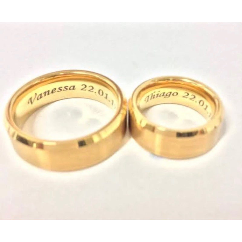 Par Aliança Chanfrada Com Gravação A Laser Grátis Banhado A Ouro 18k Compromisso Noivado Casamento