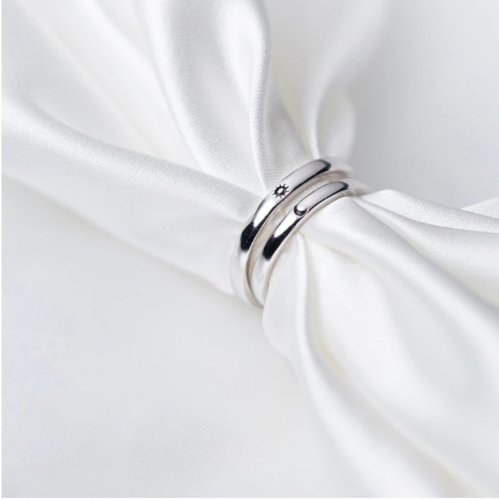 Par Aliança Sol e Lua Ajustável Casal Banhada Prata 925 presente Namoro Compromisso Anel Amor Eterno