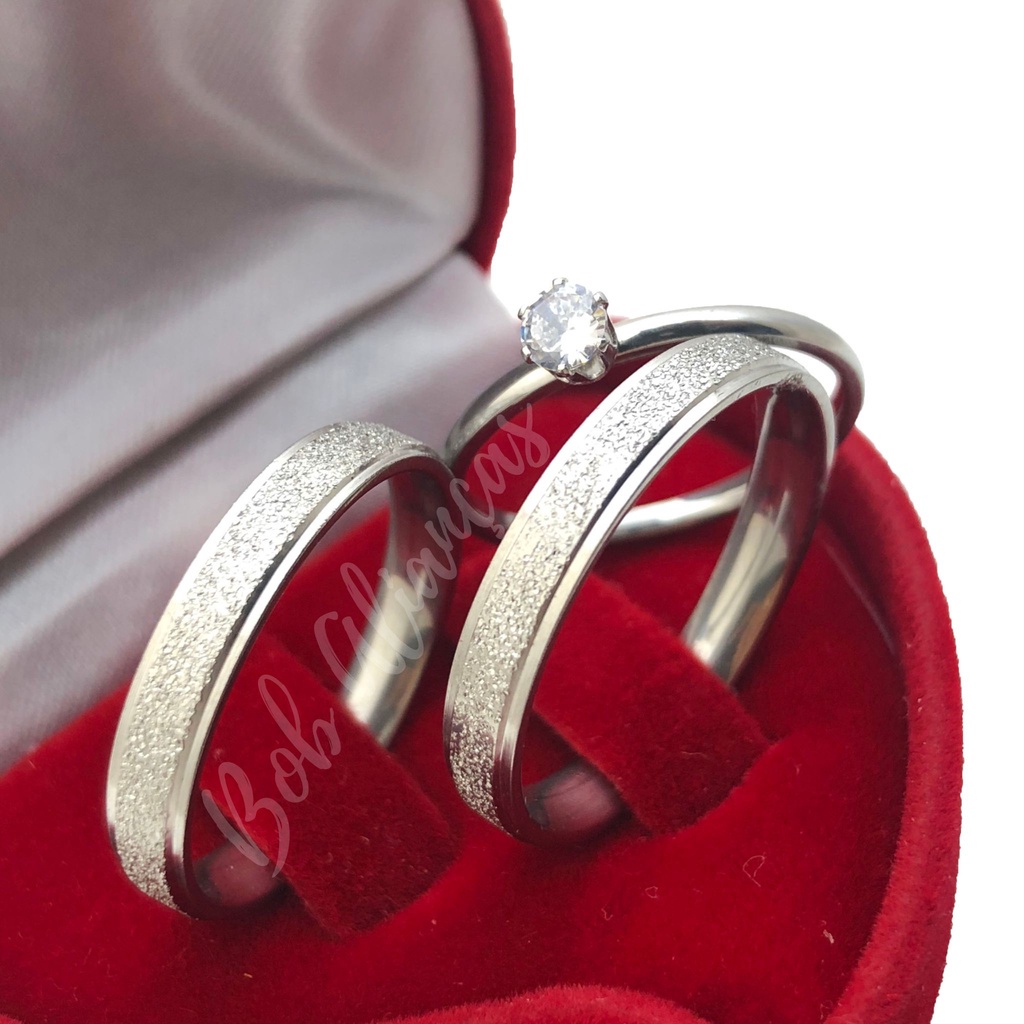 par alianças de namoro prata fina com solitário aliança fina com brilho diamantada 4mm aço inoxidável