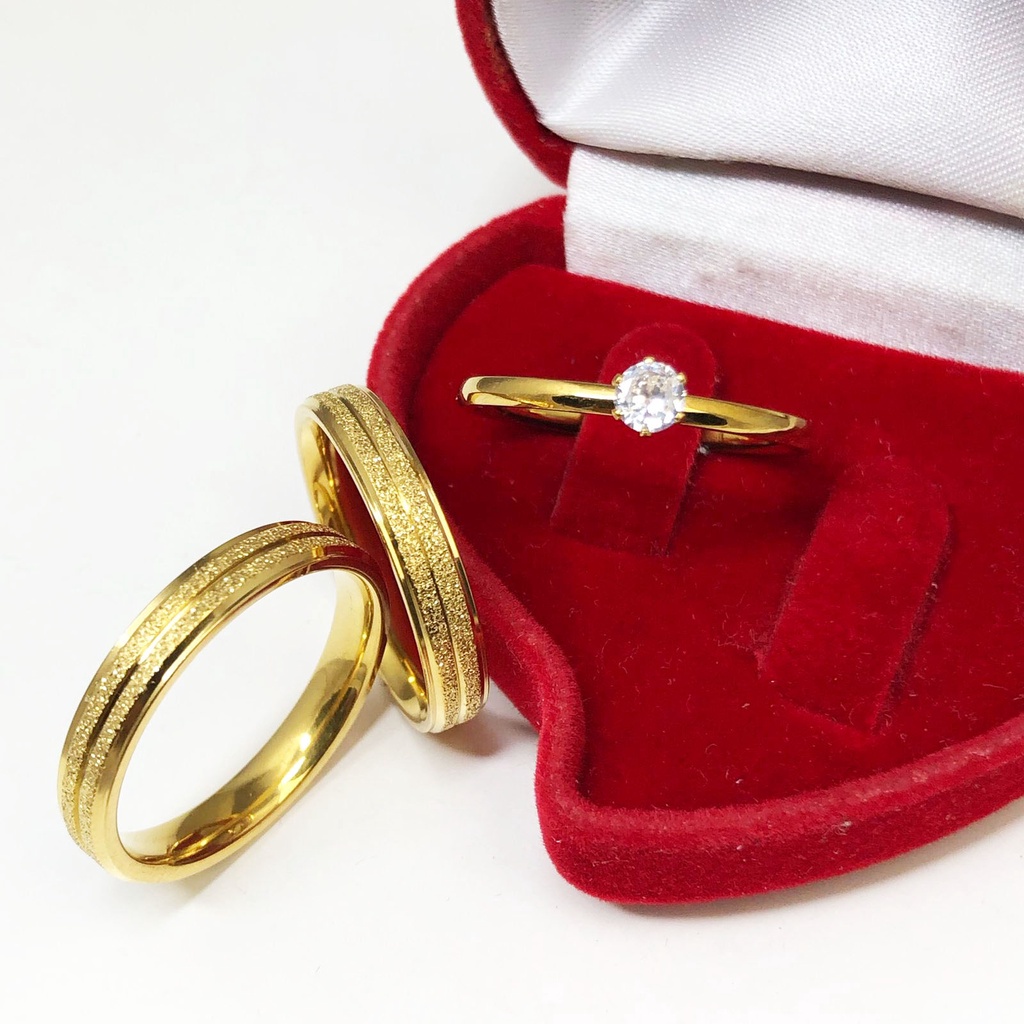 Par Alianças Noivado Compromisso Fina Aço Inox Banhado + Anel Solitário Aparador