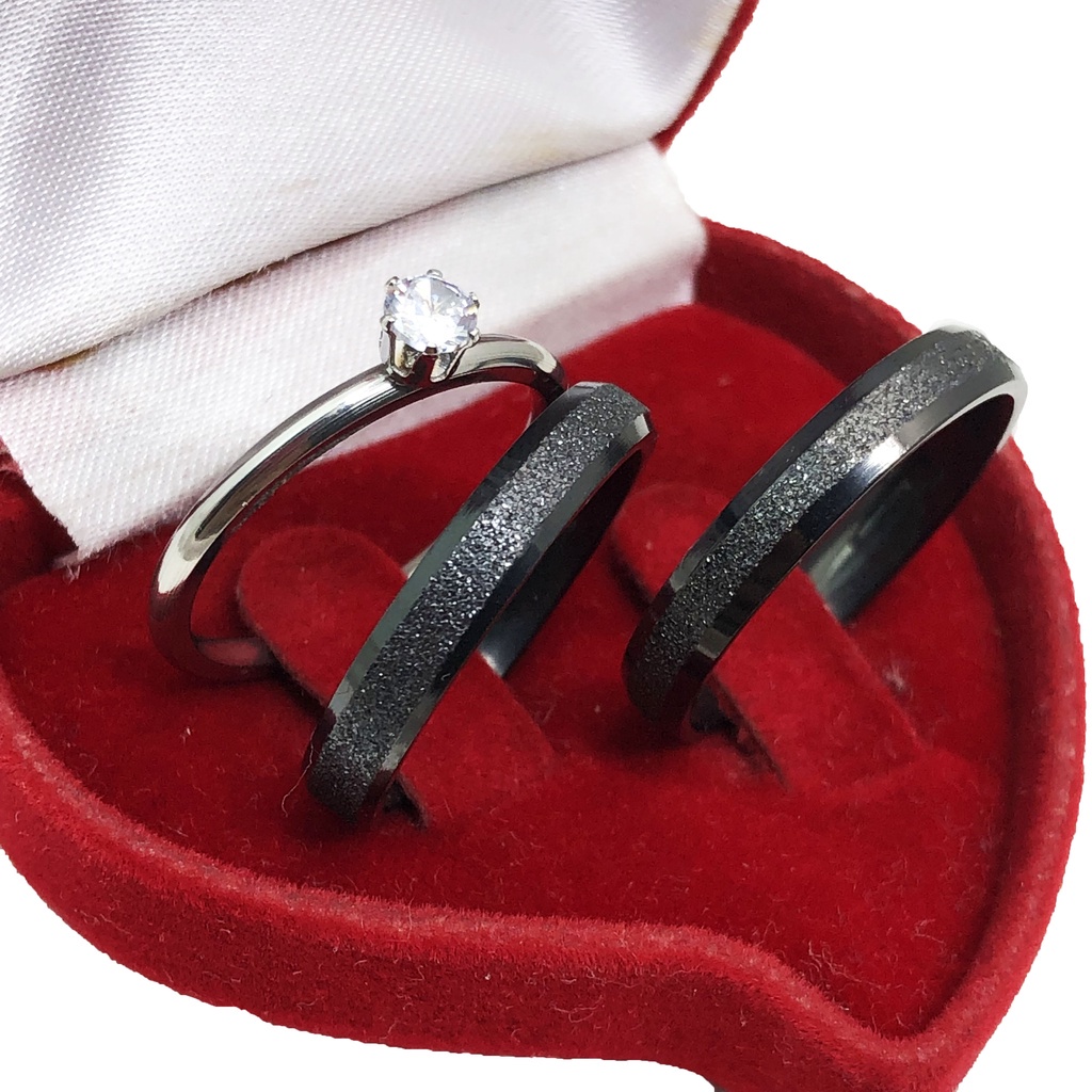 Par Alianças Preta Black Fina 4mm Namoro Compromisso Jateada Aço Inox Banhado Anatômica e Anel Solitario
