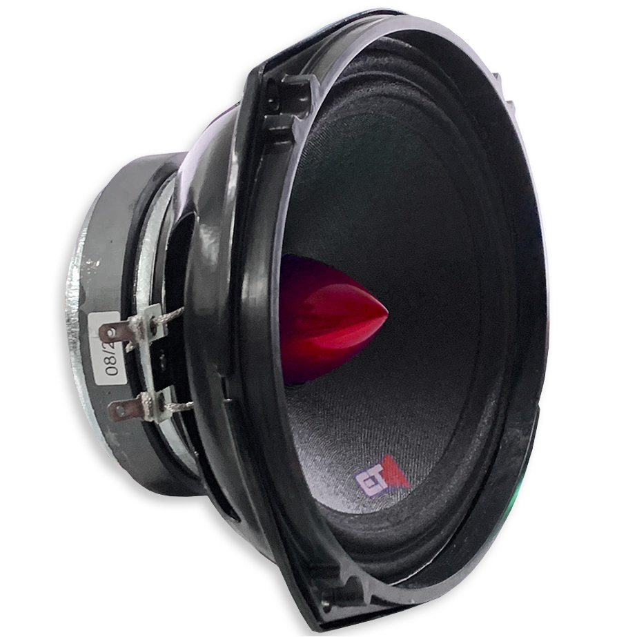 Tipo: Médio Grave Utilização : Alto falantes destinados ao uso em caixas acústicas automotivas e residenciais como WOOFERS com resposta de frequência na faixa de GRAVES aos Médio AGUDOS. Caracteristicas Técnicas: Reproduz médio-graves cheios e definidos Suspensão em tecido Cone em fibras mistas de celulose e algodão Acabamento diferenciado Produto Polivalente Bobina móvel tipo T.V.C. (thermoset voice coil) - resistente a 200°C Carcaça de chapa de aço com pintura em poliéster Conjunto magnético com refrigeração IMÃ em ferrite de Bário Especificações Técnicas: Diâmetro Nominal: 6XP inch Impedância nominal: 4 Ohms Diâmetro da Bobina Móvel: 33,0 mm Potência de Programa: 250w Potência nominal ( ABNT NBR.10.303 ): 125w Resposta de frequência: 73 a 5.200 Hz Sensibilidade: 93,0 db/w/m Corte de frequência recomendado H.P.F (mínimo): 150 Hz Atenuação Ativa recomendada -24: db/oitava Parâmetros Thielle-Small: Fs (frequência de ressonância): 103,1 Hz Vas (volume equivalente): 31,42 Litros Qts (Q total): 0,6726 Qes (Q elétrico): 0,7420 Qms (Q mecânico): 7,1900 no (eficiência de referência): 1,232 % Sd (área efetiva do cone): 0,026 m² Xmáx (deslocamemto máximo): 2,5 mm OBS: Parâmetros T.S. extraidos após prévio amaciamento dos falantes Parâmetros Adicionais: BL: 5,24 TM Hvc ( altura do enrolamento da bobina ): 14,0 mm Hag ( altura do gap ): 4,00 mm MMS ( massa total): 7,609 gramas Revc (resistência ohmica da bobina): 4,14 Ohms Informações adicionais: Material do Cone : Celulose + Algodão Tipo de Suspensão: Tecido resinado Material da Carcaça: Chapa de Aço Acabamento da carcaça : Pintura Poliéster Diâmetro / altura do imã : Ø 83mm / 14mm Fio da bobina : Cobre Dados para montagem : Diâmetro Total do Falante: 165X236,5 mm Altura Total / Altura de instalação: 94 mm Peso do Falante: 1,020 g Quantidade de Furos de Fixação: 4 Furos Diâmetro dos Furos de Fixação: 5,0 x 7,0 mm Diâmetro do Circulo dos Furos de Fixação: 204 mm Diâmetro de corte para Montagem Frontal: 151,5X220,0 mm Diâmetro de corte para Montagem Traseira: nd mm Distâcia Mínima da parede da caixa ao Fundo do falante: 12 mm Volume ocupado no gabinete: 0,074 Litros Conteúdo da Embalagem: 01 - Alto Falante Emb 6x9 Pol 125w