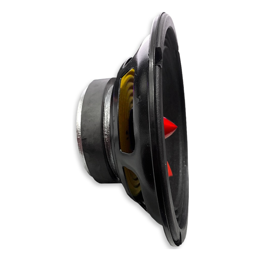 Tipo: Médio Grave Utilização : Alto falantes destinados ao uso em caixas acústicas automotivas e residenciais como WOOFERS com resposta de frequência na faixa de GRAVES aos Médio AGUDOS. Caracteristicas Técnicas: Reproduz médio-graves cheios e definidos Suspensão em tecido Cone em fibras mistas de celulose e algodão Acabamento diferenciado Produto Polivalente Bobina móvel tipo T.V.C. (thermoset voice coil) - resistente a 200°C Carcaça de chapa de aço com pintura em poliéster Conjunto magnético com refrigeração IMÃ em ferrite de Bário Especificações Técnicas: Diâmetro Nominal: 6 inch Impedância nominal: 4 Ohms Diâmetro da Bobina Móvel: 33,0 mm Potência de Programa: 250w Potência nominal ( ABNT NBR.10.303 ): 200w Resposta de frequência: 80 a 4.400 Hz Sensibilidade: 93,28 db/w/m Corte de frequência recomendado H.P.F (mínimo): 150 Hz Atenuação Ativa recomendada -24: db/oitava Parâmetros Thielle-Small: Fs (frequência de ressonância): 116,2 Hz Vas (volume equivalente): 7,791 Litros Qts (Q total): 1,206 Qes (Q elétrico): 1,58 Qms (Q mecânico): 5,091 no (eficiência de referência): 1,054 % Sd (área efetiva do cone): 0,014 m² Xmáx (deslocamemto máximo): 2,5 mm OBS: Parâmetros T.S. extraidos após prévio amaciamento dos falantes Parâmetros Adicionais: BL: 5,44 TM Hvc ( altura do enrolamento da bobina ): 14,0 mm Hag ( altura do gap ): 4,00 mm MMS ( massa total): 7,609 gramas Revc (resistência ohmica da bobina): 4,14 Ohms Informações adicionais: Material do Cone : Celulose + Algodão Tipo de Suspensão: Tecido resinado Material da Carcaça: Chapa de Aço Acabamento da carcaça : Pintura Poliéster Diâmetro / altura do imã : Ø 83mm / 14mm Fio da bobina : Cobre Dados para montagem : Diâmetro Total do Falante: 167 mm Altura Total / Altura de instalação: 65,5 / 59,5 mm Peso do Falante: 0,935 g Quantidade de Furos de Fixação: 4 Furos Diâmetro dos Furos de Fixação: 5,0 x 7,0 mm Diâmetro do Circulo dos Furos de Fixação: 156 mm Diâmetro de corte para Montagem Frontal: 145 mm Diâmetro de corte para Montagem Traseira: 148 mm Distâcia Mínima da parede da caixa ao Fundo do falante: 10 mm Volume ocupado no gabinete: 0,056 Litros Conteúdo da Embalagem: 02 - Alto Falante Emb 6 Pol 200w
