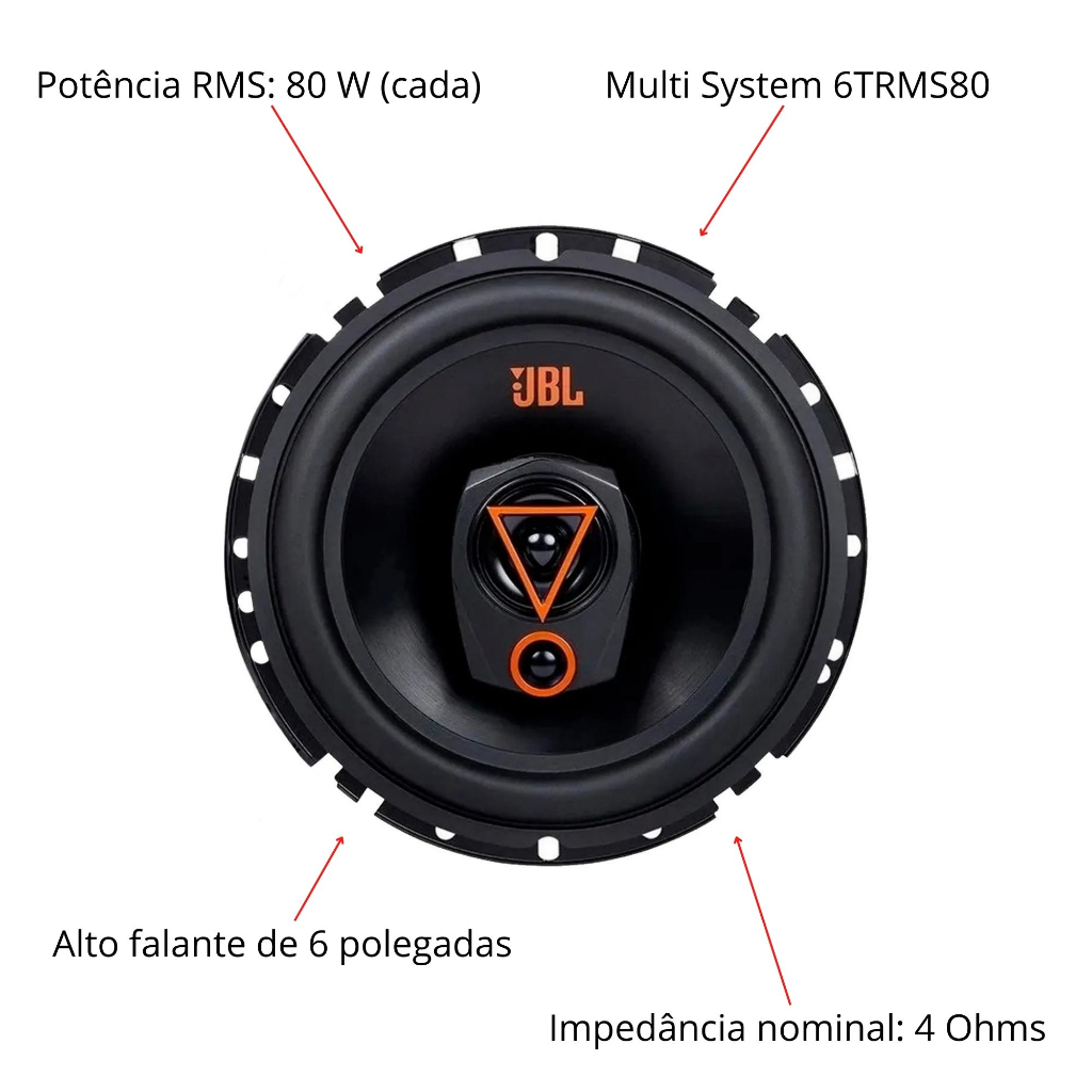 ***PRODUTO ORIGINAL*** O Multi System 6TRMS80 é composto por um par de alto-falantes triaxiais de 6" projetados para reprodução de frequências em todo o espectro de audio: graves, médios e agudos. O triaxial juntamente com adaptadores adequados (quando necessário) é ideal para instalação nos locais originais, não sendo necessário nenhuma alteração no automóvel. - Especificações Técnicas: • JBL Multisystem 6TRMS80 • Alto-falante de 3 vias de 6-1 / 2 "(160 mm) • Tweeter dinâmico • Resposta de frequência: 60 – 20000 Hz • Sensibilidade: 87 dB (1W@1m) • Impedância: 4 OHMS • Potência RMS: 80W RMS (Cada Alto Falante) • Bobina: 31,7mm • Tweeter: 36mm • Ferrite diametro: 85x15mm • Cone: PP - Conteúdo da Embalagem: • 01 x Par de alto falantes • 01 x Folheto técnico • 01 x Certificado de garantia • 01 x Adesivo JBL Garantia de Fábrica: 12 meses de garantia contra defeitos de fabricação. OBS: As cores das imagens podem variar de acordo com as configurações do seu monitor. ATENÇÃO: As compras realizadas em nome de Pessoa Jurídica (CNPJ) estarão sujeitas à cobrança de ICMS SUBSTITUIÇÃO TRIBUTÁRIA de acordo com a legislação vigente ao estado adquirente da mercadoria.