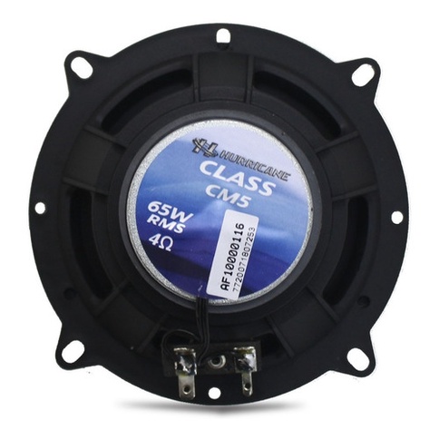 # OESTESOM # Alto Falante Hurricane Class CM5 5 Polegadas 130W RMS 4 Ohms Quadriaxial 89dB Preto Azul Par LINHA CLASS HURRICANE Os alto-falantes quadriaxiais da Linha Class Hurricane são ideais para quem deseja um som de qualidade com excelente custo benefício, A linha composta de 5 modelos com diferentes medidas e múltiplas furações, garantem praticidade e rápida instalação nos espaço originais dos veículos. Composto de carcaça de metal, cone de polipropileno, borda de borracha, garante uma equilibrada reprodução sonora e maior resistência mecânica. Características • Cone injetado em Polipropileno • Tweeters Piezo • Diafragma de Mylar • Altura Reduzida • Borda em Borracha Surround • Carcac¸a Injetada • Bobina de 1¿ em corpo de Alumi´nio • Modelo: Class CM5 • Diâmetro Nominal: 5 Polegadas • Potência RMS: 65W RMS (Cada) • Potência Wmax: 130W (Cada) • Impedância Nominal: 4 Ohms • Modelo Quadriaxial • Resposta de Frequência: 80Hz a 22Khz • Sensibilidade: 89dB • Na Cor Preta com Azul • Bobina Simples • Cone Injetado em Polipropileno • Borda em Borracha Surround • Tweeters Piezo • Diafragma de Mylar • Carcaça Injetada • Fácil Instalação • Altura Aproximada do Ímã: 1,4cm • Dimensões Aproximadas (DxP): 16,5x5,5cm Conteúdo da Embalagem: • 02 Alto Falantes Importante: A *OESTESOM* recomenda que a instalação seja feita por profissional especializado e não se responsabiliza pelo mau uso do produto.