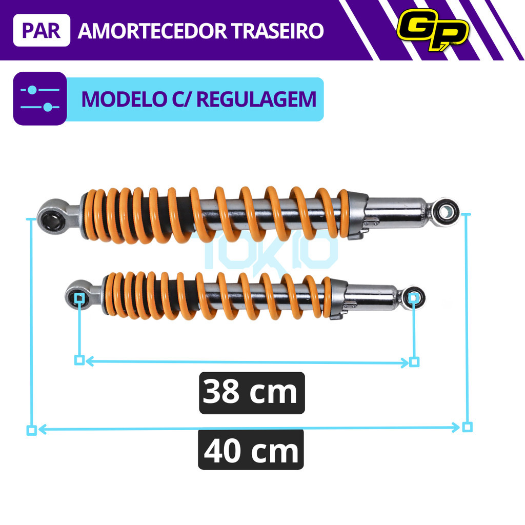 PAR AMORTECEDOR FAZER 150 YBR FACTOR 150 2014/2024 MOLA AMARELA COM REGULAGEM
