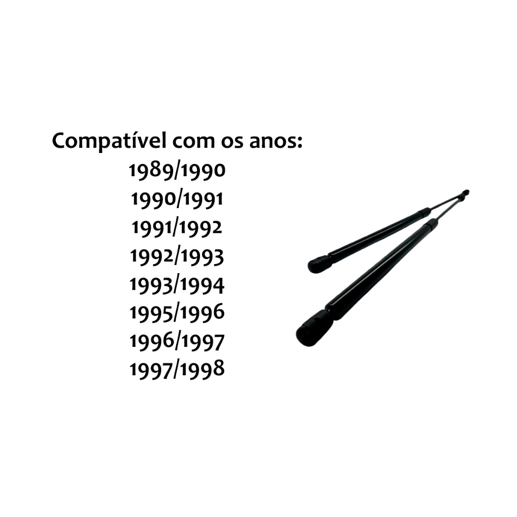 Par Amortecedor de Porta-Malas Kadett. Modelos Compatíveis: 1989/1990 1990/1991 1991/1992 1992/1993 1993/1994 1994/1995 1995/1996 1996/1997 1997/1998 Especificações: Comprimento Aberto de centro a centro de montagem: 56 cm Comprimento fechado de centro a centro de montagem: 36 cm Curso: 20 cm Força de expansão: 700 N Peso bruto: 0,700 Kg Testamos todos nossos produtos antes de enviarmos aos nossos clientes, temos garantia de até 90 dias. Obs.: Visando melhorar o nosso atendimento e compromisso com nossos clientes, solicitamos que qualquer duvida ou problema entre em contato conosco, nosso atendimento aos canais da Shopee são das 08:00 a.m as 18:00 p.m.