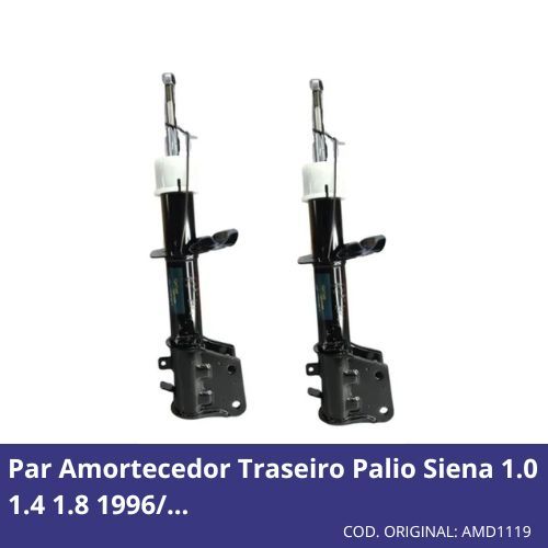 Este anúncio contém os seguintes produtos: 02 -Amortecedores Traseiros Perfect ( Direito / Esquerdo ) Produtos novos, originais, com 3 meses de Garantia. Este produto se aplica a esses veículos: Marca: FIAT Veiculo: Palio; Motores: 1.0, 1.3; Anos de fabricação: 2001, 2002, 2003; Observações: Não se aplica no Palio Weekend. Veiculo: Palio; Motores: 1.0, 1.4, 1.8; Anos de fabricação: 2004, 2005, 2006, 2007, 2008, 2009, 2010; Observações: Não se aplica no Palio Weekend. Veiculo: Palio; Motores: 1.0; Anos de fabricação: 2012, 2013, 2014, 2015, 2016; Observações: Não se aplica no Palio Weekend. Veiculo: Palio; Motores: 1.0, 1.4, 1.6; Anos de fabricação: 2011, 2012, 2013, 2014, 2015; Observações: Não se aplica no Palio Weekend. Veiculo: Siena; Motores: 1.0, 1.3, 1.5; Anos de fabricação: 2001, 2002, 2003; Observações: Não se aplica ao Grand Siena. Veiculo: Siena; Motores: 1.4, 1.8; Anos de fabricação: 2004, 2005, 2006, 2007, 2008; Observações: Não se aplica ao Grand Siena. Veiculo: Siena; Motores: 1.0; Anos de fabricação: 2004, 2005, 2006, 2007, 2008, 2009, 2010, 2011; Observações: Não se aplica ao Grand Siena. Dúvidas frequentes: - O Produto é novo? Sim. Nós trabalhamos apenas com produtos novos, e com garantia. - O Produto é original? Sim. Nós só trabalhamos com distribuidores homologados pelo fabricante. - Tem garantia? Sim. Todos nossos produtos têm 90 dias de garantia de fabrica contra defeitos de fabricação, exceto os amortecedores que possuem 2 anos de garantia total. Sobre Nós A Jb Autopeças, Fundada Em 1980, é uma empresa referência no mercado de autopeças, oferecendo soluções completas para veículos nacionais e importados. Com mais De 40 Anos de experiência, nossa equipe especializada proporciona atendimento personalizado e consultivo para atender às necessidades específicas de cada cliente. Com mais De 30.000 itens em estoque dos melhores fabricantes, estamos prontos para oferecer a solução Ideal que o seu carro precisa. Temos por missão, fornecer autopeças de alta qualidade, com excelência em serviço e entrega, garantindo satisfação total aos nossos clientes. Nossa equipe está comprometida com: 1. Compromisso Com A Qualidade. 2. Excelência No Atendimento. 3. Inovação Contínua. 4. Ética E Transparência.