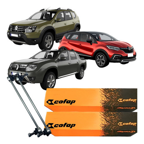 Este anúncio contém os seguintes produtos: 01 (uma) Bieleta de Suspensão Dianteira Direito Novo e Original Cofap; 01 (uma) Bieleta de Suspensão Dianteira Esquerda Novo e Original Cofap; Atenção: Produtos Novos e Originais, com 3 meses de garantia total, a pronta entrega. Código do produto: BTC18109. Aplicação dos Veículos: Veículo: Captur; Motor: 1.6 16v, 2.0 16v; Ano Inicial: 2017, 2018, 2019, 2020, 2021. Veículo: Duster 4x4; Motor: 2.0 16v; Ano Inicial: 2011, 2012, 2013, 2014, 2015, 2016, 2017. Veículo: Duster 4x2; Motor: 1.6 16v, 2.0 16v; Ano Inicial: 2011, 2012, 2013, 2014, 2015, 2016, 2017. Veículo: Oroch; Motor: 1.6 16v, 2.0 16v; Ano Inicial: 2016, 2017, 2018, 2019, 2020, 2021, 2022. Dúvidas frequentes: O Produto é novo? Sim, nós trabalhamos apenas com produtos novos e originais com garantia. O Produto é original? Sim, nós só trabalhamos com distribuidores representados pelos fabricante, ou compramos diretamente dos fabricantes, gerando confiança da originalidade do produto. Tem garantia? Sim, todos nossos produtos têm 3 Meses (90 dias) de garantia contra defeitos de fabricação, exceto os amortecedores que possuem 2 anos de garantia total. O produto é igual ao da foto? Sim. Todas as fotos são fiéis ao que você irá receber, e para facilitar a sua compra ilustramos também o veículo em que se aplica o produto. Em quanto tempo recebo minha compra? É muito simples, basta colocar seu CEP no calculador de frete do anuncio. Como faço para saber se o produto deste anúncio se aplica ao meu veículo? Você pode conferir se o produto se aplica no seu carro através da descrição do anúncio no item: “Aplicação dos Veículos”. Caso tenha alguma dúvida, entre em contato com nossa equipe e os profissionais qualificados irão te orientar em qualquer dúvida, estamos sempre a disposição. Tem alguma dúvida sobre o produto ou sobre a compra? Deixe sua pergunta abaixo, que responderemos prontamente. O que é: A Bieleta é uma peça que faz parte do sistema de suspensão. Ela é posicionada na barra estabilizadora, transmitindo os movimentos compensatórios para o sistema de suspensão. Só para exemplificar, ela é uma haste metálica que liga a barra estabilizadora ao sistema de suspensão. Para garantir um melhor desempenho de sua função, ela é fixada nas extremidades do sistema através de pinos ou buchas. Dessa forma, a peça é uma das principais responsáveis pelo bom funcionamento de todo o sistema de suspensão. Porém, sua função vai bem além disso. Sobre o Fabricante: Poucos consumidores sabem o nome da marca de alguma peça do seu automóvel. Agora, experimente perguntar qual o sinônimo de amortecedor e a resposta, invariavelmente, será COFAP. A cada minuto, 250 amortecedores Cofap são vendidos no mundo. Todos os dias úteis do mês, todos os meses do ano. Há mais de 60 anos, ninguém vende amortecedores como a Cofap. A marca COFAP existe desde 1951 no mercado brasileiro e, a partir dos anos 70, graças a um formidável esforço de exportação, em 98 países dos 5 continentes. Inicialmente, a marca foi utilizada para produtos da linha motor, mas, logo em seguida, passou a ser utilizada também para os produtos Undercar, cujo carro-chefe é, sem dúvida, o amortecedor, percebido pelo mercado brasileiro como um produto sinônimo da marca "top of mind" do segmento de autopeças. Se é Cofap, é de confiança e no mundo inteiro.