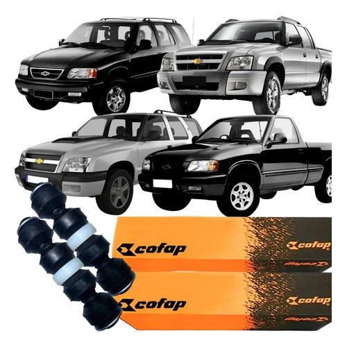 Este anúncio contém os seguintes produtos: 01 (uma) Bieleta de Suspensão Dianteira Direito Novo e Original Cofap; 01 (uma) Bieleta de Suspensão Dianteira Esquerda Novo e Original Cofap; Atenção: Produtos Novos e Originais, com 3 meses de garantia total, a pronta entrega. Código do produto: BTC04114. Aplicação dos Veículos: Marca: GM; Veículo: Blazer; Motor: 2.2 8v, 2.4 8v, 2.5 8v, 2.8 12v, 4.3 12v; Ano Inicial: 1997, 1998, 1999, 2000, 2001, 2002, 2003, 2004, 2005, 2006, 2007, 2008, 2009, 2010, 2011; Obs: Aplicada na Barra Estabilizadora; Marca: GM; Veículo: S10; Motor: 2.2 8v, 2.4 8v, 2.5 8v, 2.8 12v, 4.3 12v; Ano Inicial: 1997, 1998, 1999, 2000, 2001, 2002, 2003, 2004, 2005, 2006, 2007, 2008, 2009, 2010, 2011; Obs: Aplicada na Barra Estabilizadora;