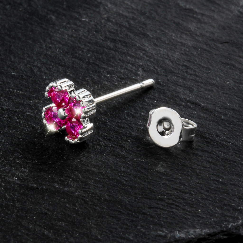 Par Brincos Feminino Flor Cravejado Prata 925 Legítima Antialérgico Zircônia Vermelha Delicados e Elegância