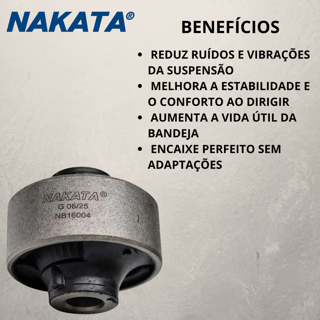 KIT COM 2 BUCHAS DA BANDEJA DIANTEIRA TRASEIRA NB16004, APLICAÇÃO EM NISSAN LIVINA, SENTRA E TIIDA. PEÇAS DO SISTEMA DE SUSPENSÃO RESPONSÁVEIS POR ABSORVER VIBRAÇÕES, REDUZIR RUÍDOS E MANTER O ALINHAMENTO CORRETO DA BANDEJA, GARANTINDO CONFORTO, ESTABILIDADE E SEGURANÇA AO VEÍCULO. PRODUTO BUCHA DA BANDEJA CÓDIGO NB16004 POSIÇÃO DIANTEIRO TIPO BUCHA TRASEIRA DA BANDEJA MARCA NAKATA COMPOSIÇÃO TÉCNICA METAL E BORRACHA DE ALTA RESISTÊNCIA DESENVOLVIDA PARA ABSORÇÃO DE IMPACTOS E VIBRAÇÕES FABRICAÇÃO CONFORME PADRÕES ORIGINAIS ITENS INCLUSOS 02 BUCHAS DA BANDEJA NB16004 BENEFÍCIOS REDUZ RUÍDOS E VIBRAÇÕES DA SUSPENSÃO MELHORA A ESTABILIDADE E O CONFORTO AO DIRIGIR AUMENTA A VIDA ÚTIL DA BANDEJA ENCAIXE PERFEITO SEM ADAPTAÇÕES APLICAÇÃO NISSAN LIVINA 1.6 / 1.8 – 2010 A 2014 – DIANTEIRA – BUCHA TRASEIRA NISSAN SENTRA 2.0 – 2007 A 2020 – DIANTEIRA – BUCHA TRASEIRA NISSAN TIIDA 1.8 – 2008 A 2014 – DIANTEIRA – BUCHA TRASEIRA REFERÊNCIAS CRUZADAS MOBENSANI MB7014 SAMPEL 8329 NISSAN 54570-BB00A NISSAN 54570-ED00A DÚVIDAS FREQUENTES SERVE EM QUAL LADO? APLICAÇÃO NA SUSPENSÃO DIANTEIRA, BUCHA TRASEIRA DA BANDEJA. O KIT ATENDE OS DOIS LADOS? SIM, CONTÉM 2 UNIDADES, ATENDENDO UM LADO DIREITO E UM ESQUERDO. ATENÇÃO ANTES DE FINALIZAR A COMPRA, CONFIRA A APLICAÇÃO DE ACORDO COM O ANO E MODELO DO VEÍCULO. EM CASO DE DÚVIDA, UTILIZE O CAMPO DE PERGUNTAS. CASO OCORRA QUALQUER PROBLEMA, NÃO ABRA RECLAMAÇÃO. ENTRE EM CONTATO COM NOSSA EQUIPE DE ATENDIMENTO PARA UMA SOLUÇÃO RÁPIDA E EFICIENTE. BUCHA BANDEJA NISSAN, KIT BUCHA SUSPENSÃO DIANTEIRA, NB16004, BUCHA TRASEIRA BANDEJA, LIVINA SENTRA TIIDA, METAL BORRACHA NAKATA Garantia do vendedor: 90 dias
