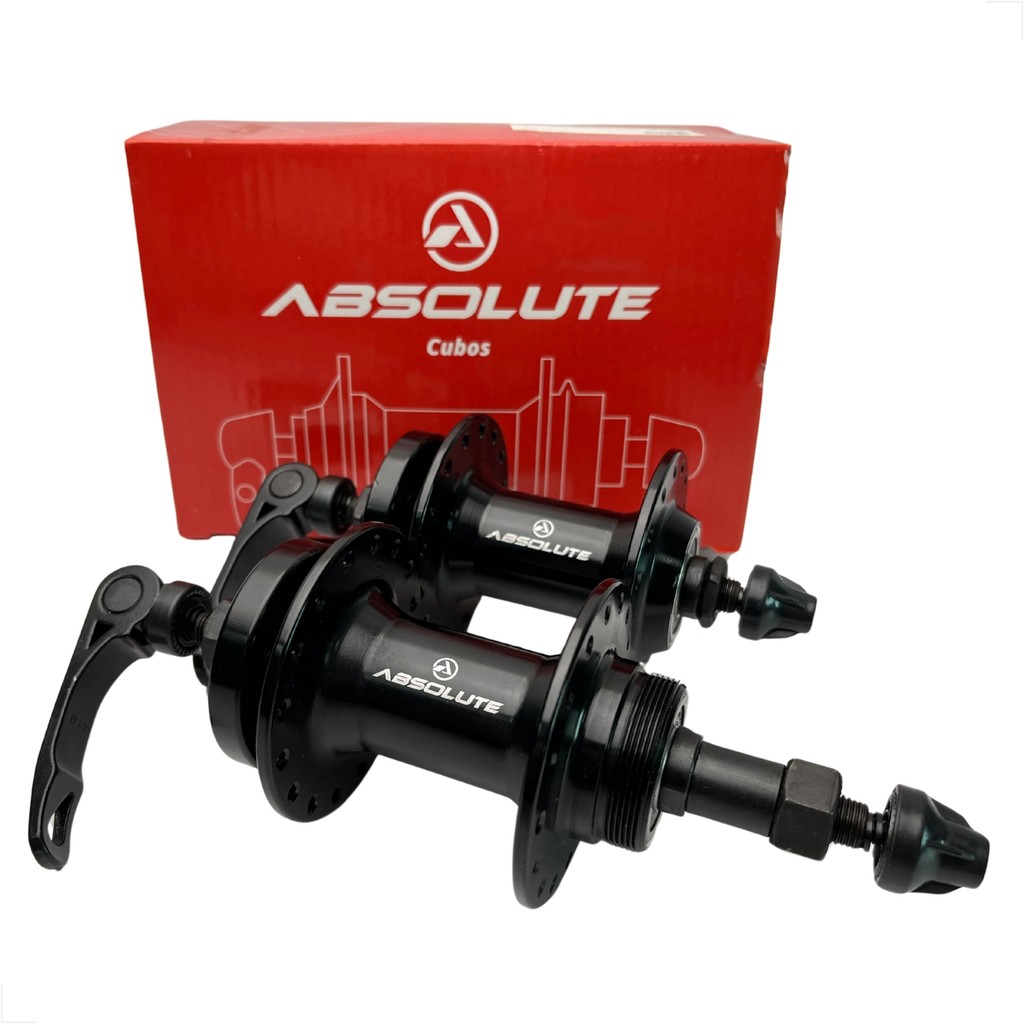 PAR CUBO ABSOLUTE FW 32 FUROS P/ DISCO 6 PARAFUSOS / CATRACA DE ROSCA / C/BLOCAGEM - ROLAMENTO SELADO Itens que compõe o anúncio: - 01 und - CUBO DIANTEIRO ABSOLUTE FW 32 FUROS P/ ROTOR 6 PARAFUSOS C/BLOCAGEM; - 01 und - CUBO TRASEIRO ABSOLUTE FW 32 FUROS P/ ROTOR 6 PARAFUSOS / CATRACA DE ROSCA / C/BLOCAGEM. Atenção: ** NÃO COMPATÍVEL COM CASSETE DE ENCAIXE; ** Confirme a quantidade de furos do seu aro antes da compra; ** Compatível com CATRACA DE ROSCA / Roda livre de 6v ou 7v. O par de cubos ABSOLUTE FW é um excelente custo X benefício para a montagem de rodas. Esse modelo segue com rolamentos selados e é compatível com sistemas de disco de freio de 6 parafusos. É compatível com quadros padrão 10x135mm e garfo/suspensão com 9x100mm, acompanha blocagem padrão QR. O cubo traseiro é para sistemas de CATRACA DE ROSCA / Roda livre de 6v ou 7v. Não serve com sistema de cassete de encaixe. Especificações: - Marca: ABSOLUTE; - Modelo: FW DISC 32 FUROS; - Indicado: URBANO / TREKKING; - Material: Corpo – Alumínio, Eixo – Aço e Blocagem – Aço; - Cubo Dianteiro + Cubo Traseiro; - Tipo: Blocagem QR (tradicional); - Flange Alta; - Eixo: DIANTEIRO – 9x100mm , TRASEIRO – 10x135mm; - Compatível com Disco padrão: 6 PARAFUSOS; - Furos para Raios: 32 Furos; - Rolamentos Selado: SIM - DIANTEIRO 2 und / TRASEIRO 2 und; - Cubo Traseiro: sistemas CATRACA DE ROSCA / Roda livre de 6v ou 7v - Não serve com sistema de cassete de encaixe; - Cor: Preto; - Peso aproximado: DIANTEIRO - 291g, TRASEIRO - 341g, BLOCAGENS – 100g; - Origem: China; - Part Number: 54522. Observação: - Produto original ABSOLUTE; - Importado por ISAPA; - Garantia ABSOLUTE 90 dias; - Acompanha nota fiscal. Aguardamos o seu pedido! INDIAN BIKE SHOP