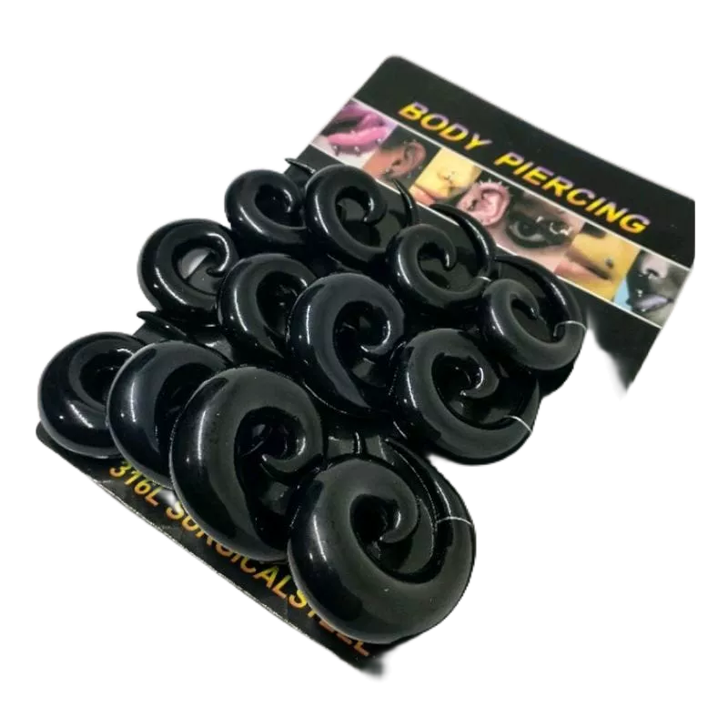Par de alargador espiral preto grosso kit 2 unidade 10mm 12mm 14mm 16mm