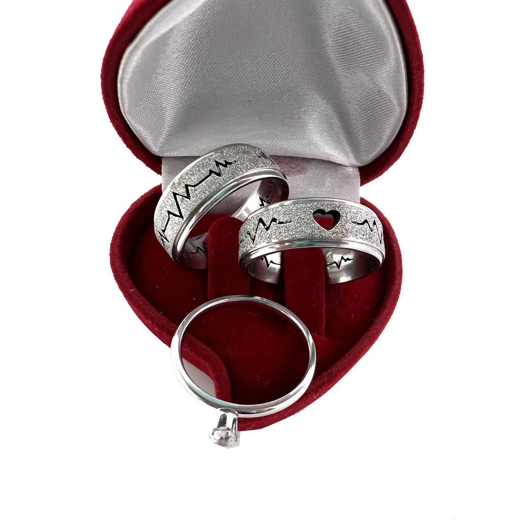 Par de Aliança Batimento Coração Vazado Prata Diamantada de Namoro/Compromisso/Noivado