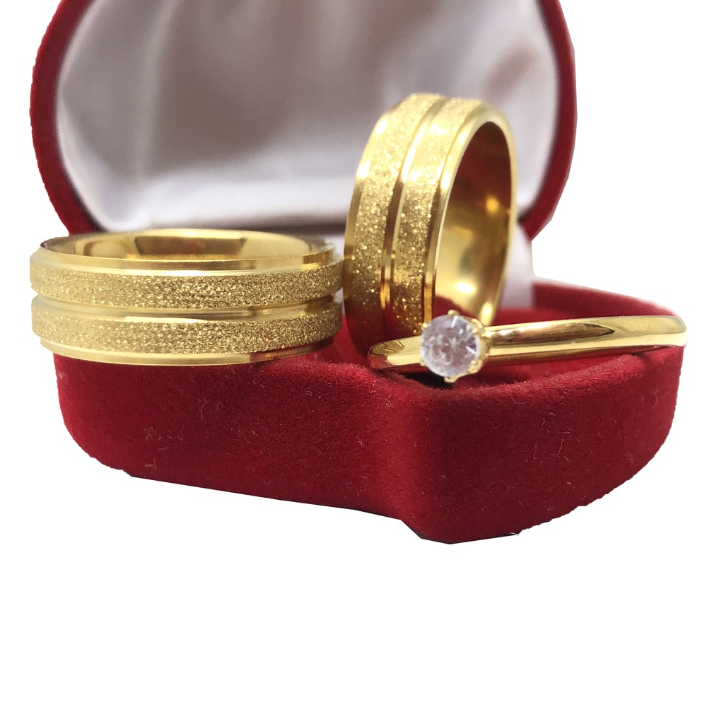 Par de Aliança de Casamento Noivado Dourada + Solitário com Zircônia