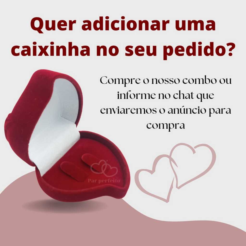 CONTEÚDO DO PACOTE: 2 ALIANÇAS 1 ANEL SOLITÁRIO (NÃO ACOMPANHA CAIXINHA) A PRONTA ENTREGA DE ENVIO IMEDIATO! Podem ser utilizadas para ocasiões de noivado, namoro, compromisso, casamento, união estável ou amizade! TAMANHOS DISPONÍVEIS DESSE MODELO BRILHANTE + SOLITÁRIO: 14 - 15 - 16 - 17 - 18 - 19 - 20 - 21 - 22 - 23 - 24 - 25 - 26 - 27 - 28 CHANFRADA: 14 - 15 - 16 - 17 - 18 - 19 - 20 - 21 - 22 - 23 - 24 - 25 - 26 - 27 - 28 - 29 - 30 - 31 - 32 - 33 - 34 - 35 Características: * Material: Aço Inox 316L * Formato interno: anatômico (que se encaixa perfeitamente ao dedo com conforto!) * Largura: 4mm * Tamanhos padrão de joalheria * Não fica preta * Não deixa o dedo verde * Não enferruja * Não oxida * Fácil limpeza Vantagens da aquisição de alianças em aço inoxidável: * O aço inoxidável é bastante durável e resistente, além de possuir alta durabilidade e brilho, as alianças em aço inox são ideais para quem trabalha com as mãos e pode molhar com água, porém para quem trabalha com produtos químicos como: produtos de limpeza e cosméticos, é necessário a retirada da peça. pois reagem quimicamente contra o banho da joia podendo perder sua cor (no caso das alianças serem douradas, pretas ou rose). * Requer pouco cuidado para manter a peça nova. O brilho é devolvido fazendo uma simples limpeza com detergente neutro. * As alianças de aço é hipoalergenico (antialérgico) tornando uma excelente alternativa para quem tem a pele sensível a metal. Para as pessoas que são alérgicas, o aço inox 316L é uma boa escolha pois possuí alta resistência a corrosão e oxidação. * As alianças de aço tem um ótimo custo X beneficio quando comparado com joias finas, a exemplo alianças de prata 925 e alianças de ouro 18k. * O aço inox é oferecido em diferentes graus de qualidade, trabalhamos com o grau 316L para garantir que você não tenha reações alérgicas. A intensidade 316L é livre de níquel e chumbo. POLITICA DE TROCA/DEVOLUÇÃO: As alianças podem ser devolvidas caso não sirva, desde que estejam sem uso e/ou gravadas e com todos os itens da compra. Aqui na Par Perfeito você conta com: * Produtos com acabamento de joalheria para casais exigentes! * Fotos reais do produto * Produtos a pronta entrega * Envio no mesmo dia para pagamentos confirmados ate as 14:00 ou em até 24 horas úteis * Envios para todo Brasil 100% seguro! * Atendimento via Chat! Tem alguma dúvida? Nosso atendimento é de Seg a Sex das 08:00 as 20:30 para tirar suas dúvidas e sanar todo e qualquer tipo de problema relacionado a sua compra. Obs* - Se você não sabe o tamanho da aliança, veja as imagens explicativas disponíveis no anúncio. - Não fazemos gravação.