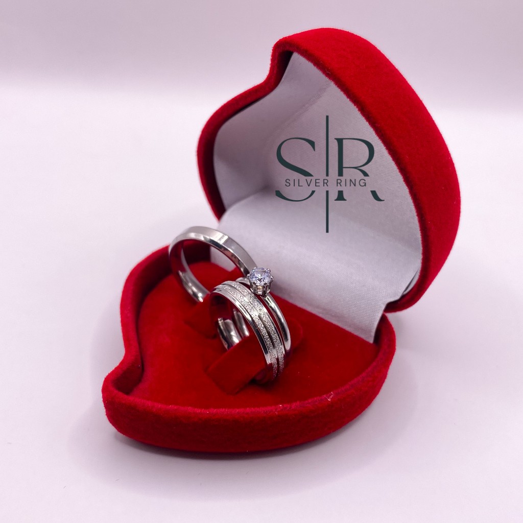Par de Aliança de Namoro Casamento Brilhante Prata Diamantada Canal e Chanfrada 4mm + Anel Solitário