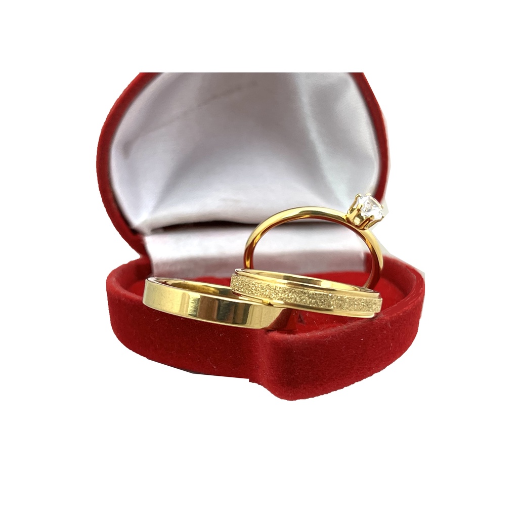 Par de Aliança de Noivado Banhada Anatômica Jateada x Lisa + Anel Solitário