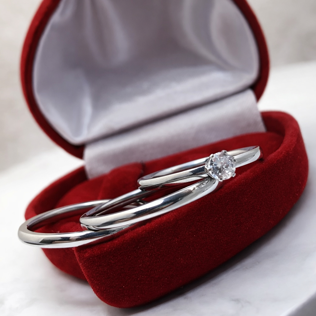 Par de Aliança Lisa Tradicional Fina Fininha 2mm de Namoro Prata + Anel Solitário