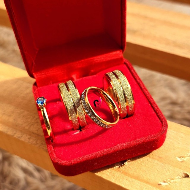 | Par de Alianças + Anel Solitário 4mm cor de Ouro 18k Luxo Noivado C... | R$ 13,99 | 77% | 5.0/5 | 8 |