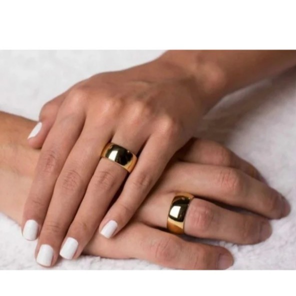 Características: Material: Aço Inox 316L Banhada Formato interno: anatômica. Largura: 8mm feminina e 8mm masculina. Tamanhos: 14 ao 32 (Consultar as numerações no chat antes de realizar o pedido) Estilo: Compromisso; Namoro; Noivado; Casamento Valor: PAR (2 unidades) + Anel solitário Feminino + Caixinha de veludo CUIDADOS: 1 - Evite Químicas Evite o contato das peças com produtos químicos e de limpeza em geral, é indicado que você retire sua peça ao manusear estes produtos. Principais vilões: cremes, shampoo, detergentes, perfumes e sabonetes. 2 – Cuidados com Perfume O perfume se for aplicado diretamente na aliança, pode acabar danificando por conta da presença do álcool em sua composição. O mais indicado é aplicar o produto e só depois de alguns minutos quando o perfume secar colocar a peça. 3 - Lustre com uma flanela Procure por uma flanela para lustrar sua aliança. Um possível escurecimento de oxidação causado por ácido úrico, produtos químicos ou forte incidência de luz pode ser facilmente removido com ajuda de uma flanelinha limpa. 4. Guarde com carinho Na hora de armazenar seu anel escolha sempre um local limpo e seco. Por isso te enviamos um lindo estojo em veludo par armazenamento de suas alianças.