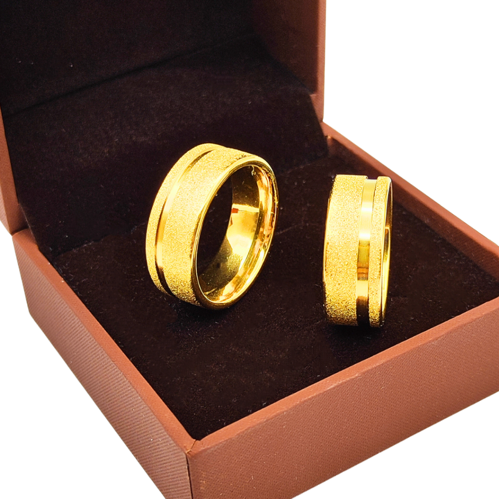 Par de Alianças de Casamento 8mm Luxuosas Diamantada com Detalhe Liso Banhadas a Ouro 18k